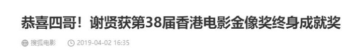 参考文献:搜狐电影——恭喜四哥!谢贤获第38届香港电影金像奖终身成就奖