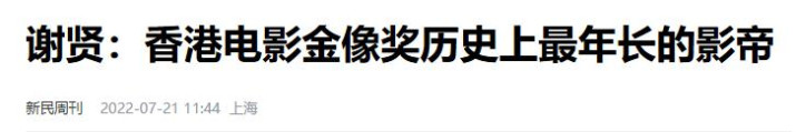 参考文献:新民周刊——谢贤:香港电影金像奖历史上最年长的影帝