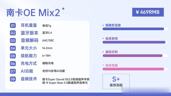 南卡作为深耕声学领域十余年的专业老牌,其专业程度和实力自然不必多说。这款南卡OE Mix2作为南卡新推出的百元旗舰机型,不仅在音质、佩戴舒适度上远超同价位,更是实现AI+音质的创新融合。