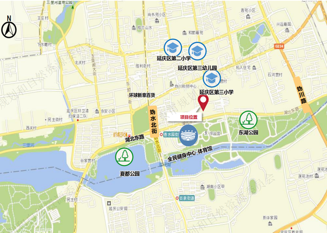 10分钟生活圈内有多所幼儿园、延庆第三小学等教育资源,东侧为小营小区,周边有健身中心、东湖公园等配套。